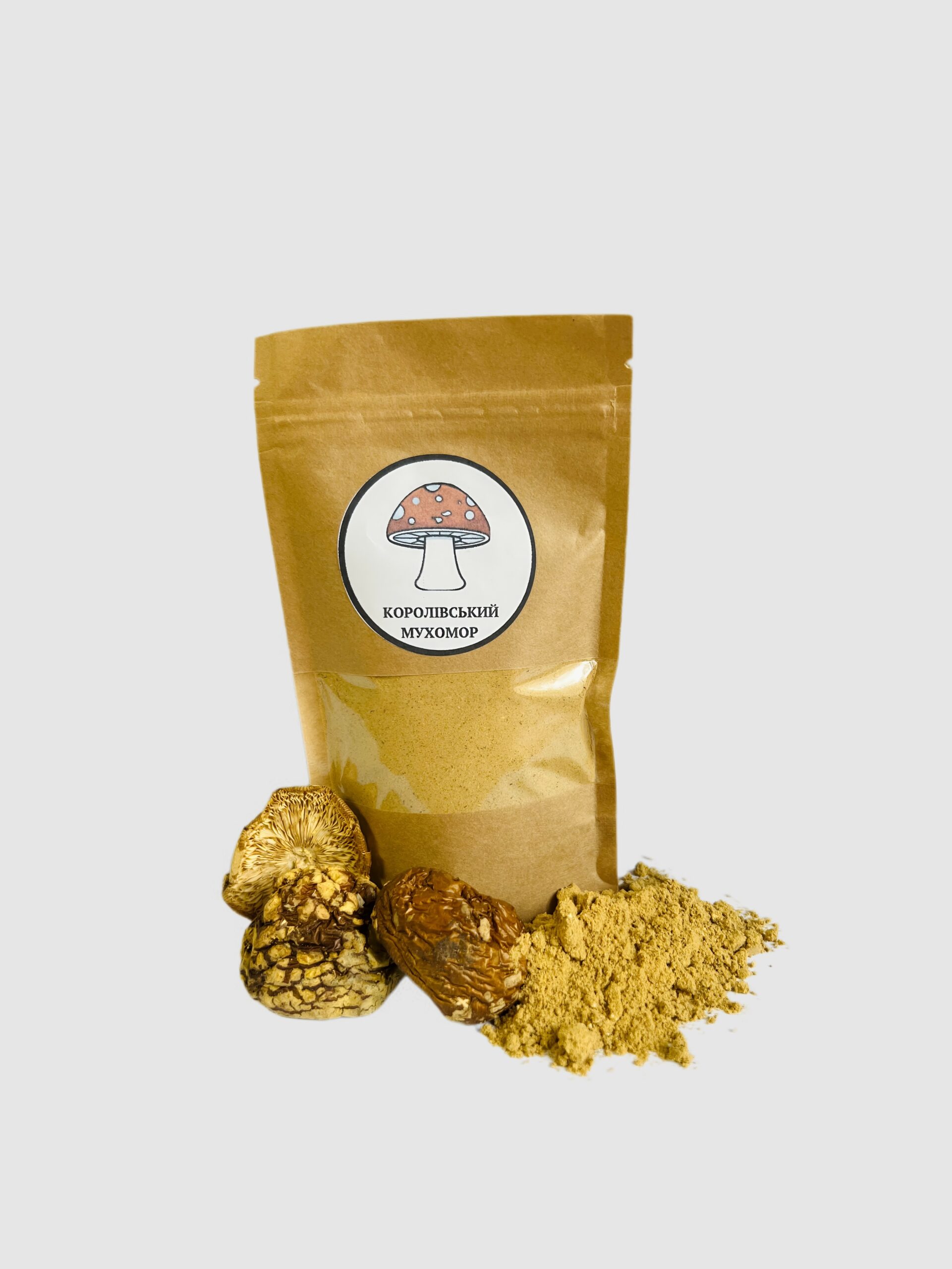 Королівський мухомор у порошку — це високоякісний продукт з сушених капелюшків гриба Amanita regalis. Він містить активні речовини — іботенову кислоту та мусцимол, які впливають на нейронні процеси мозку. Мухомор у мікродозах застосовується для підтримки когнітивних функцій, відновлення після стресу і травм мозку, а також допомагає знизити тривожність та покращити сон.