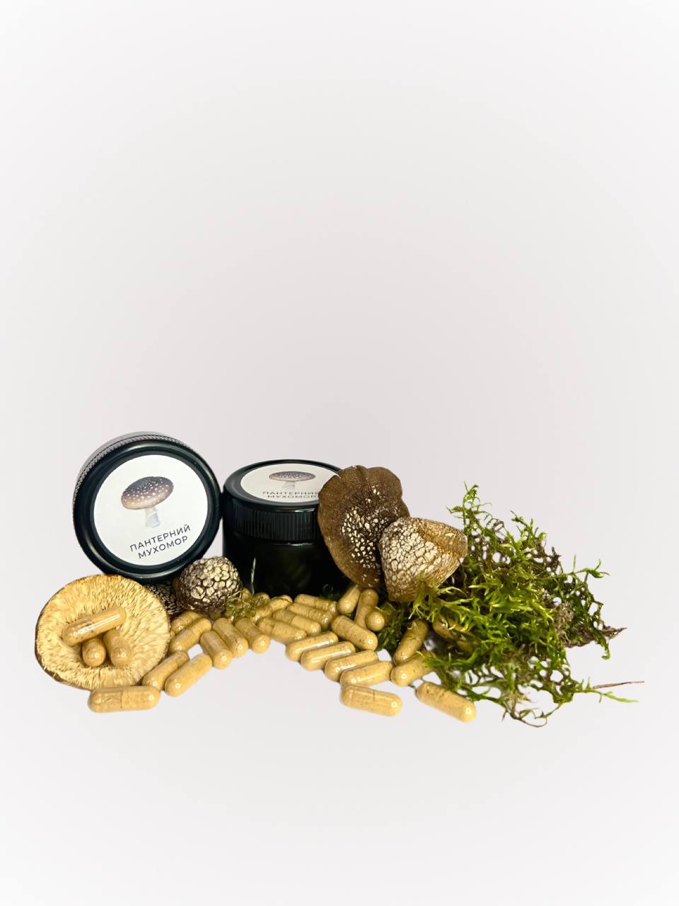 Пантерний мухомор в капсулах — це продукт на основі гриба Amanita pantherina, який відомий своїми вираженими біологічними властивостями. Його застосовують у малих дозах завдяки знеболювальному, спазмолітичному та протипухлинному ефекту 🍄.